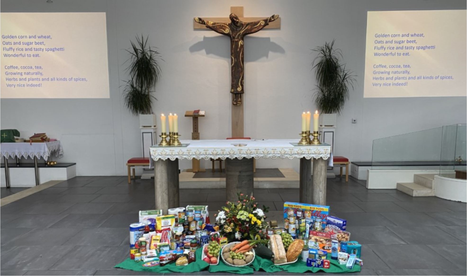 This afternoon the whole school gathered together in the church to celebrate our annual Harvest Mass.